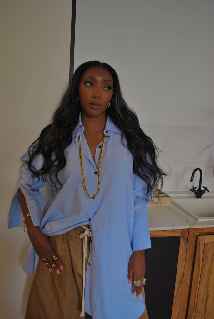 Avec sa teinte bleu ciel lumineuse, cette chemise oversize apporte une touche douce et raffinée à toute tenue.