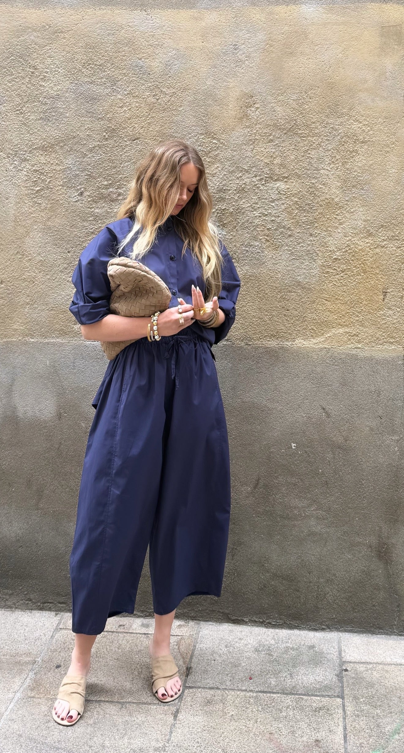 • Pantalon ballon avec un débardeur ou une chemise rentrée pour un look estival