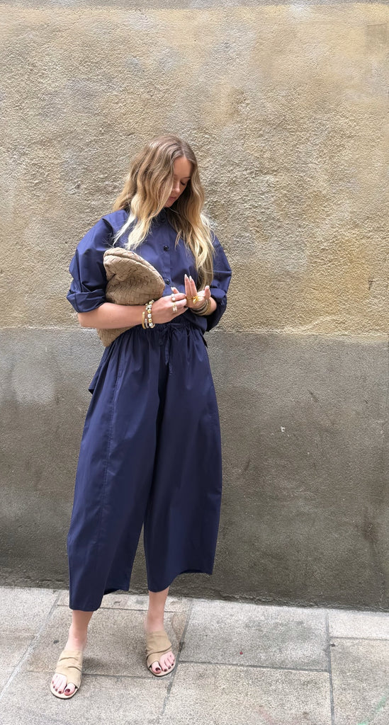 • Pantalon ballon taille haute, coupe généreuse et poches discrètes