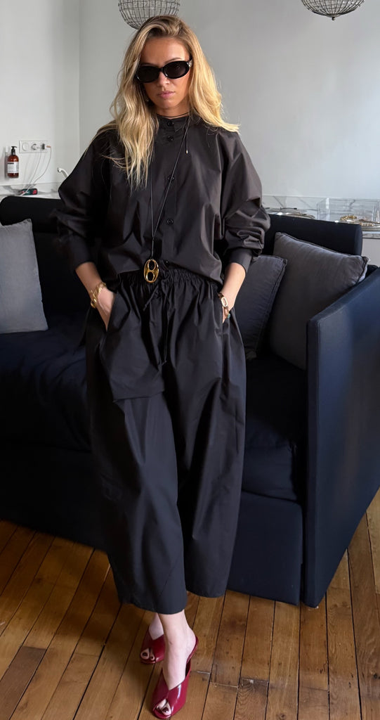 • Pantalon ballon taille haute, coupe généreuse et poches discrètes