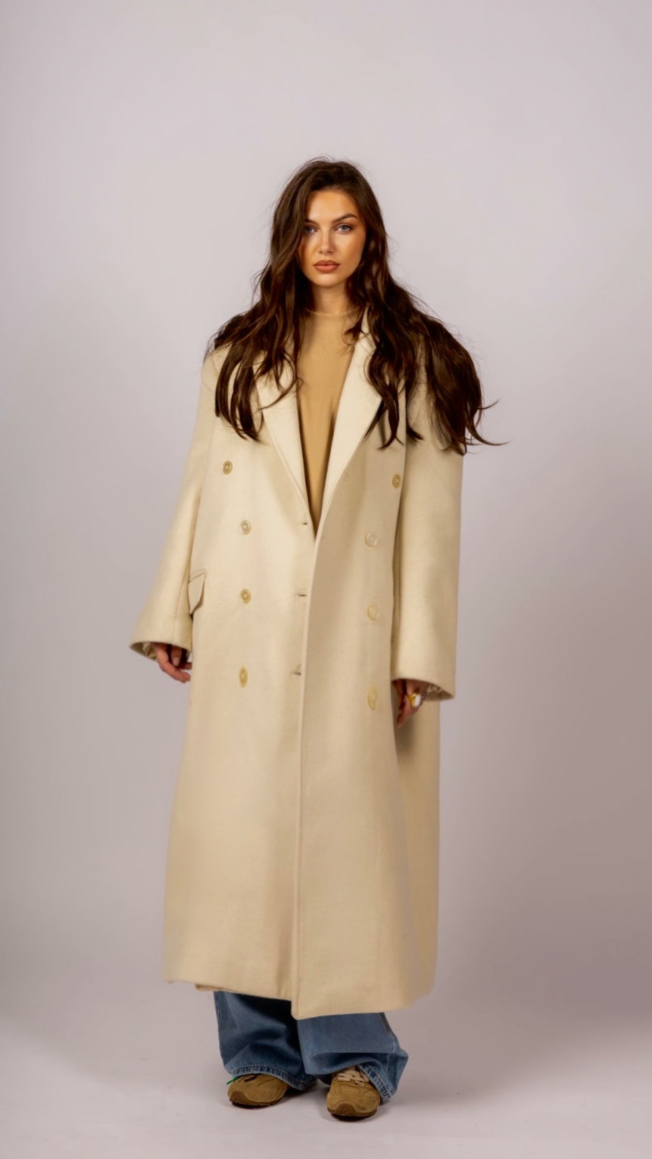 Ce manteau long croisé incarne une version plus structurée et habillée de l’ADN Naimo. Confectionné dans une laine premium, il offre chaleur, douceur et durabilité, tout en conservant un tombé fluide et élégant.