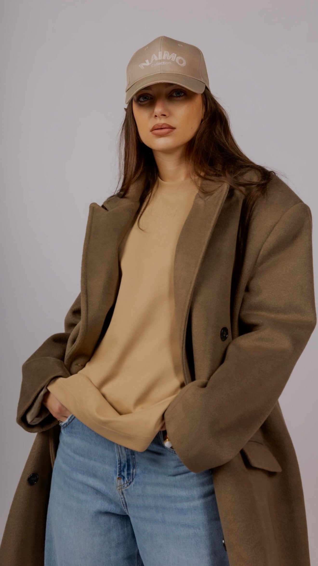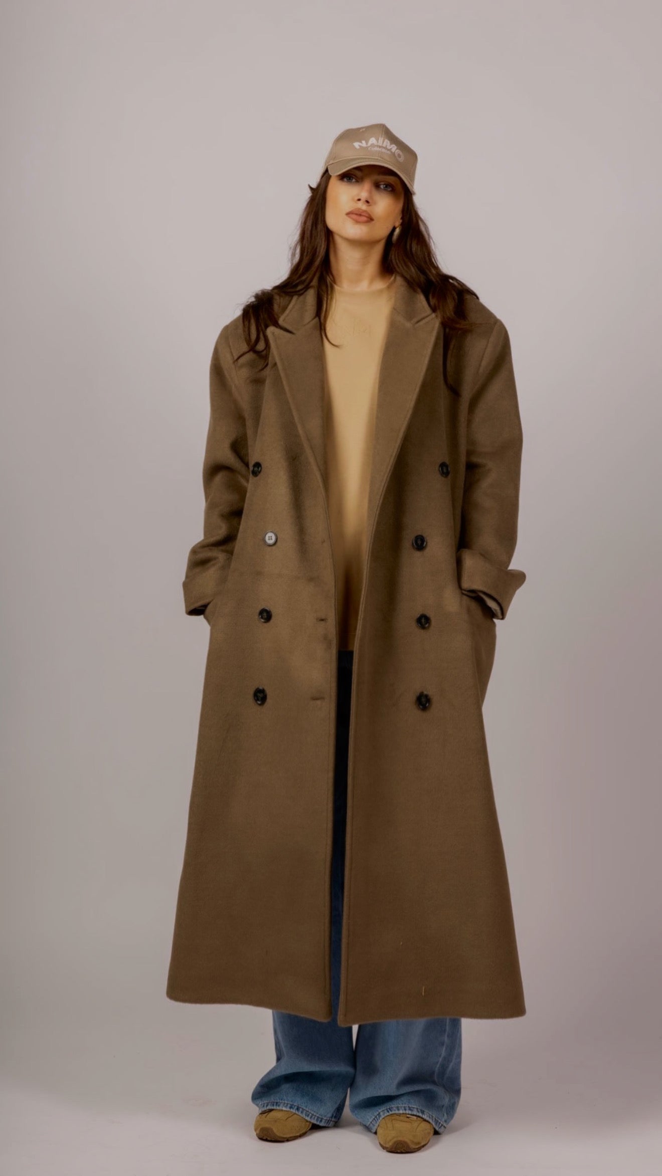 Ce manteau long croisé incarne une version plus structurée et habillée de l’ADN Naimo. Confectionné dans un mélange premium de laine, cachemire et polyester, il offre chaleur, douceur et durabilité, tout en conservant un tombé fluide et élégant.