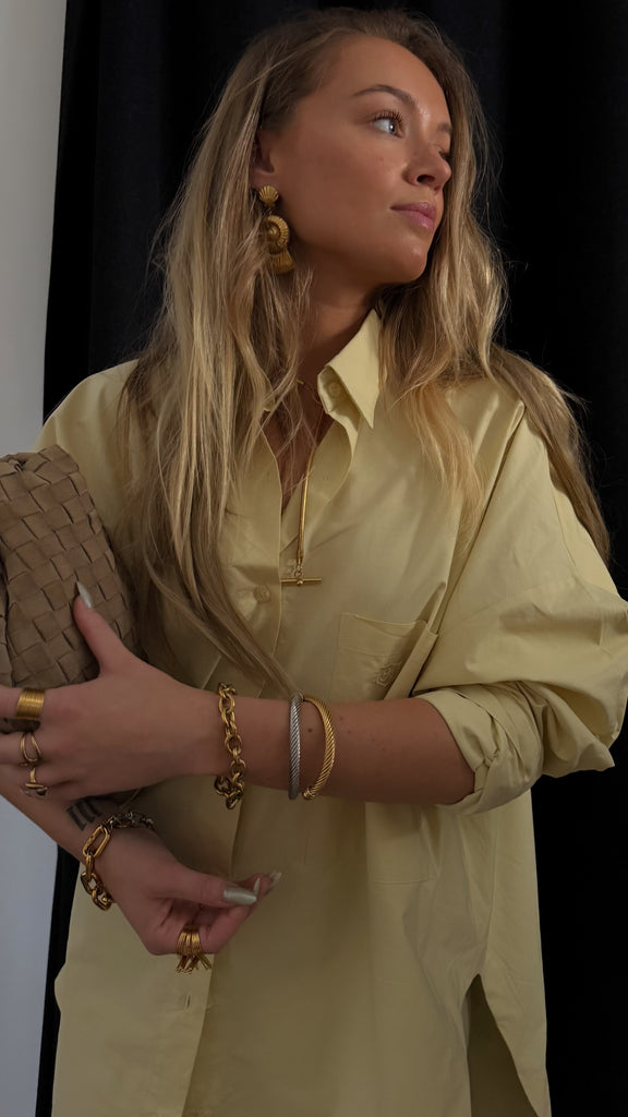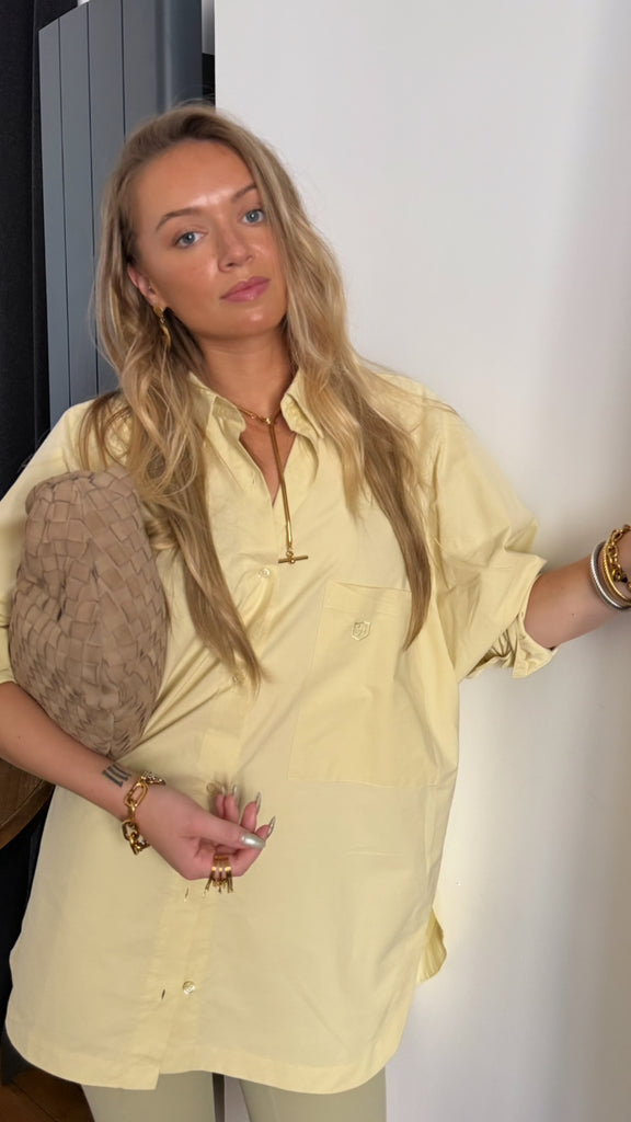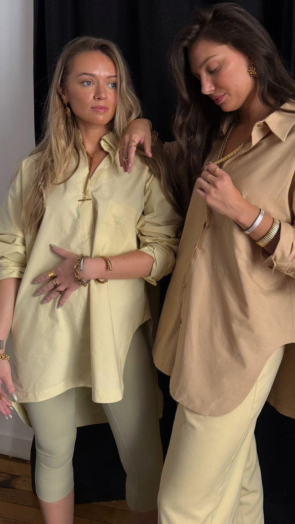 La Chemise Essential est confectionnée en popeline de coton de haute qualité, une matière à la fois légère, respirante et structurée. Sa coupe oversize assure confort et élégance au quotidien, tandis que le logo brodé ton sur ton sur la poche poitrine vient signer discrètement l’identité de la maison.