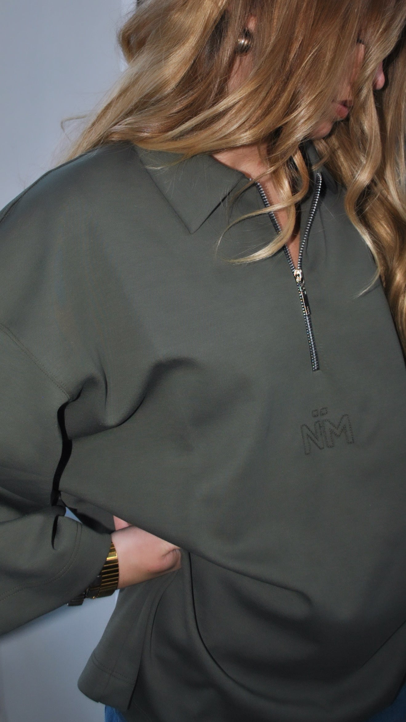 Le Haut Essential Zip revisite la coupe oversize emblématique de Naimo avec une touche plus sportive et moderne grâce à son col zippé.