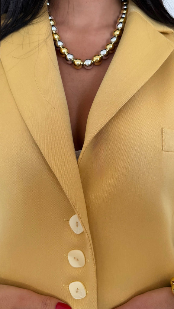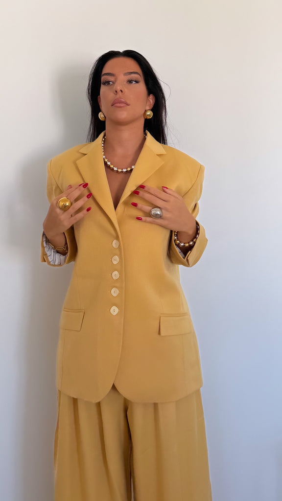 Le blazer Atelier miel se porte aussi bien ouvert qu’ajusté, sur une chemise oversize ou un top près du corps, selon l’allure souhaitée.