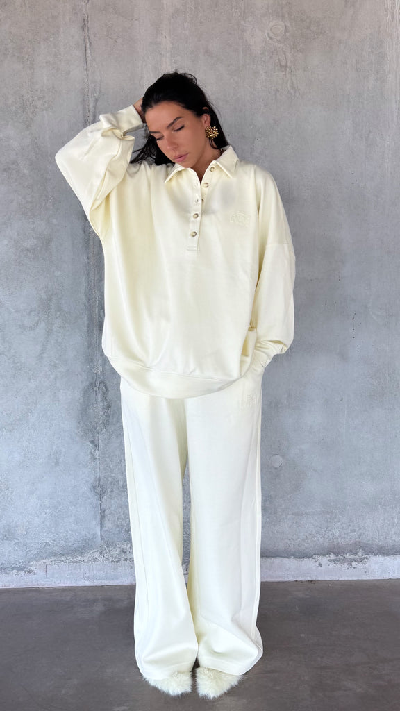 Confectionné en molleton double face 100 % coton, ce haut offre une texture lisse et soyeuse à l’extérieur, tout en restant incroyablement doux à l’intérieur.