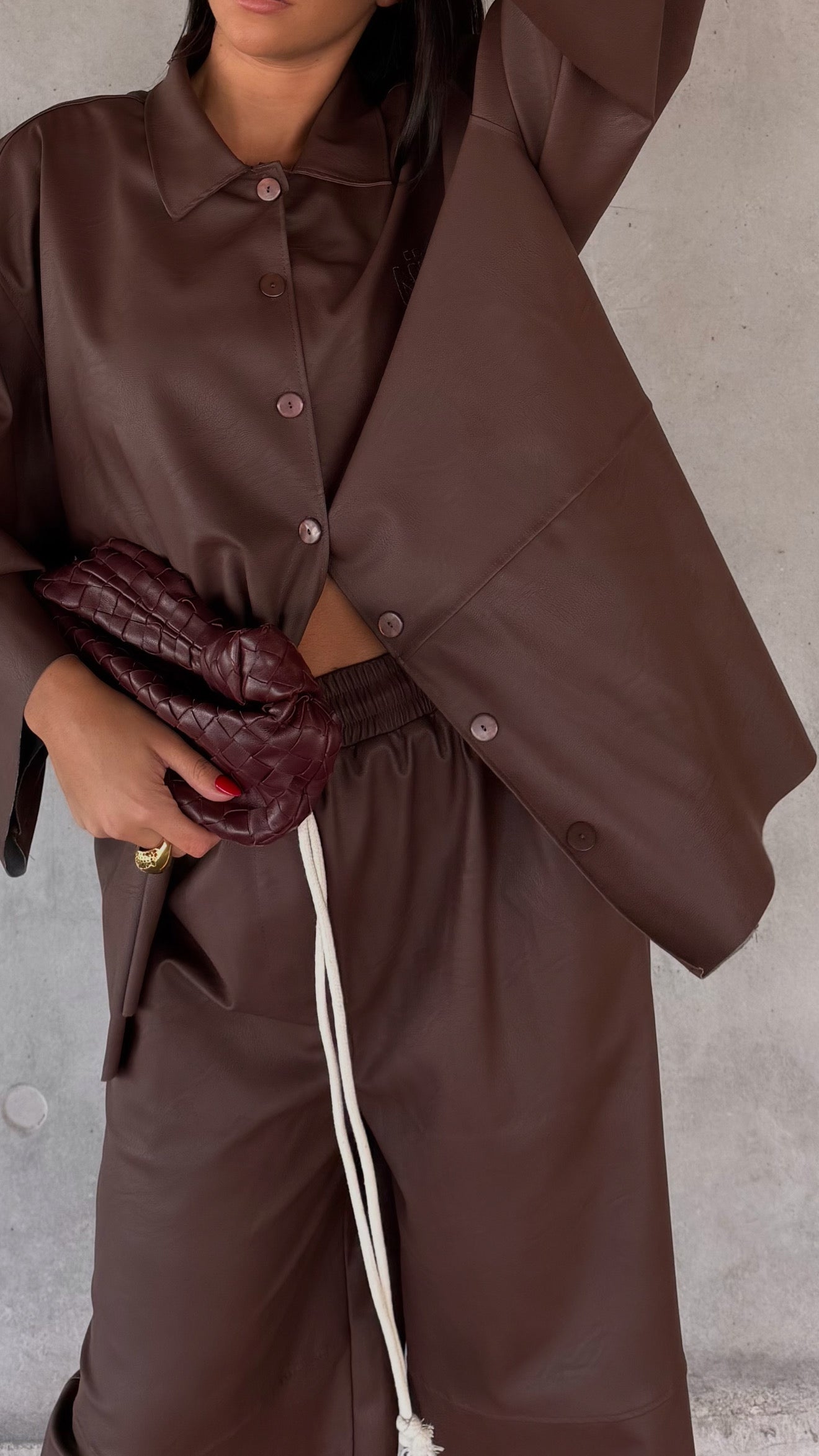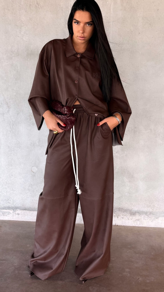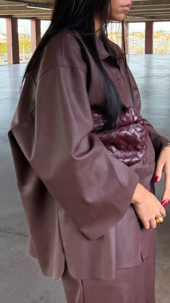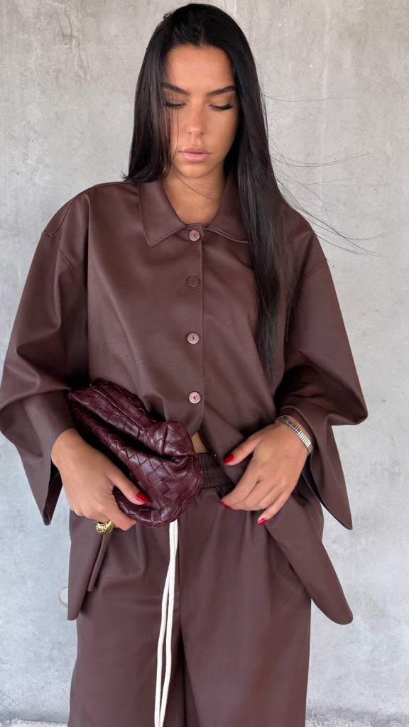 La Chemise Oversize en Similicuir incarne l’élégance affirmée et la modernité signature de Naimo Collection.