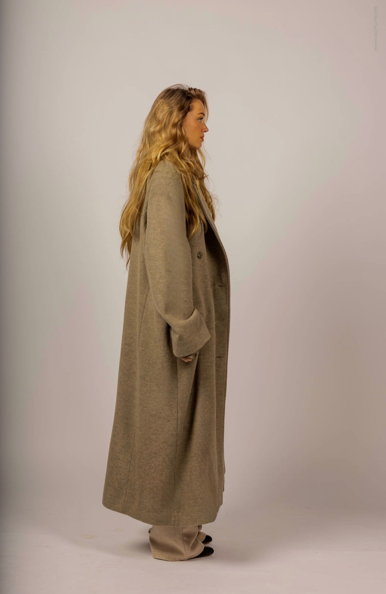 Ce manteau long croisé incarne une version plus structurée et habillée de l’ADN Naimo. Confectionné dans une laine premium, il offre chaleur, douceur et durabilité, tout en conservant un tombé fluide et élégant.