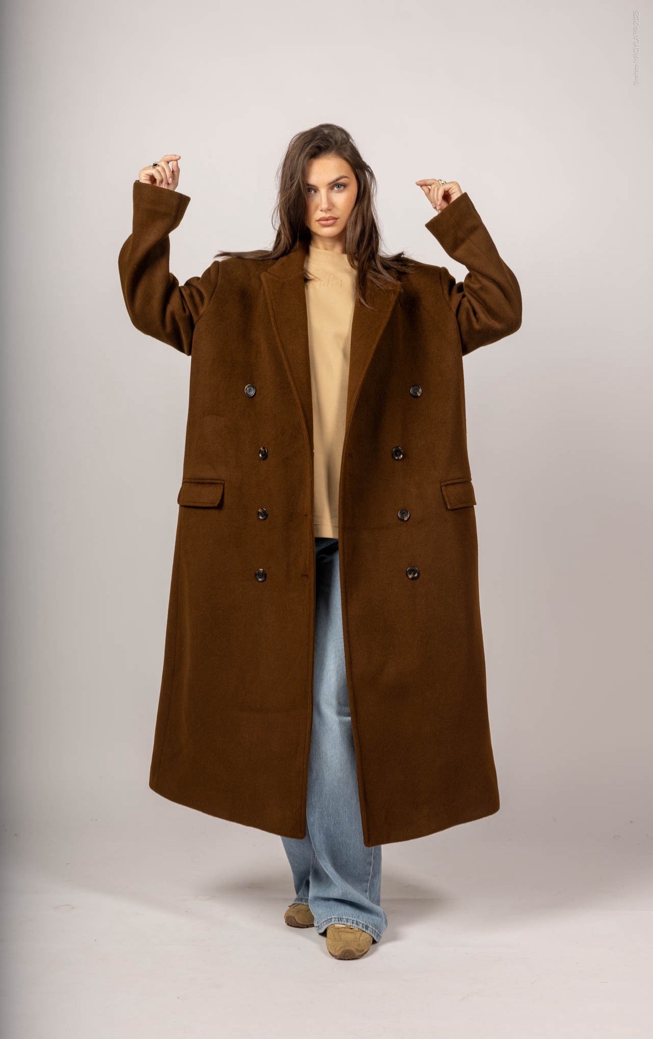 Ce manteau long croisé incarne une version plus structurée et habillée de l’ADN Naimo. Confectionné dans un mélange premium de laine, cachemire, il offre chaleur, douceur et durabilité, tout en conservant un tombé fluide et élégant.