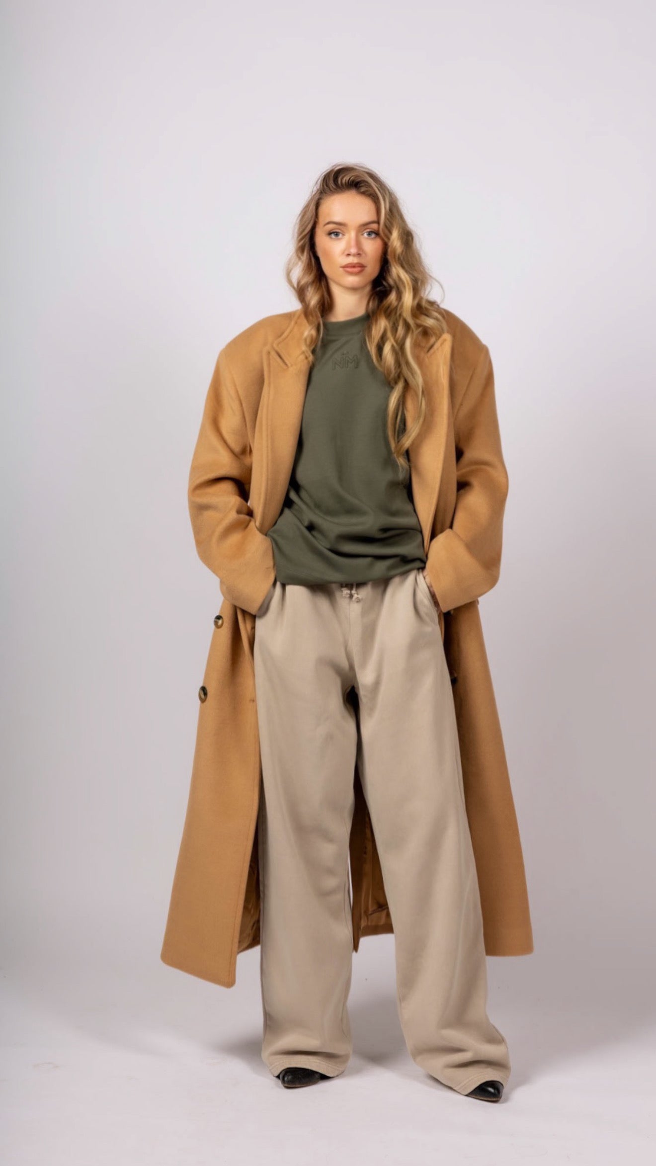 Ce manteau long croisé incarne une version plus structurée et habillée de l’ADN Naimo. Confectionné dans une laine premium, il offre chaleur, douceur et durabilité, tout en conservant un tombé fluide et élégant.